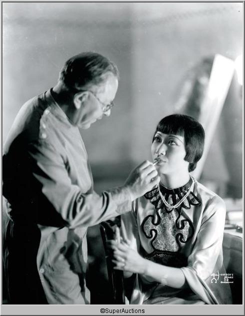 Anna May Wong from The Max Factor Collection / (1) 8 x 10 Nitrate Negative of Anna May Wong Posing while Max Factor Applies Lipstick Make-Up / (1) 8 x 10 Black & White Photograph / Archer's Studio's 38 Hollywood