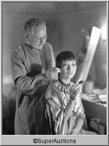 Anna May Wong from The Max Factor Collection / (1) 8 x 10 Nitrate Negative of Anna May Wong Posing while Max Factor Applies Rouge Make-Up / Archer's Studio's 37 Hollywood