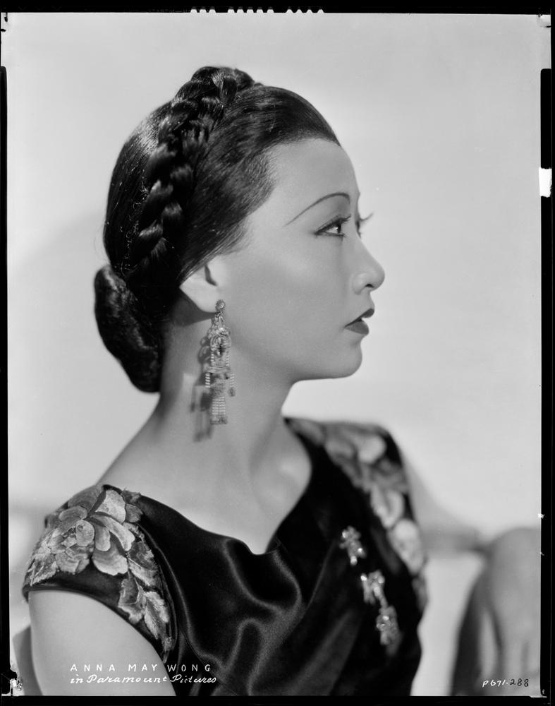 (Paramount, 1934) Black-and-white 8 x 10 in. camera negative on nitrate film of Anna May Wong from Limehouse Blues by Otto Dyar; with EASTMAN-NITRATE-KODAK etched on the border, P671-288 and retouching. Very fine; with mounting hole at the corner tips.