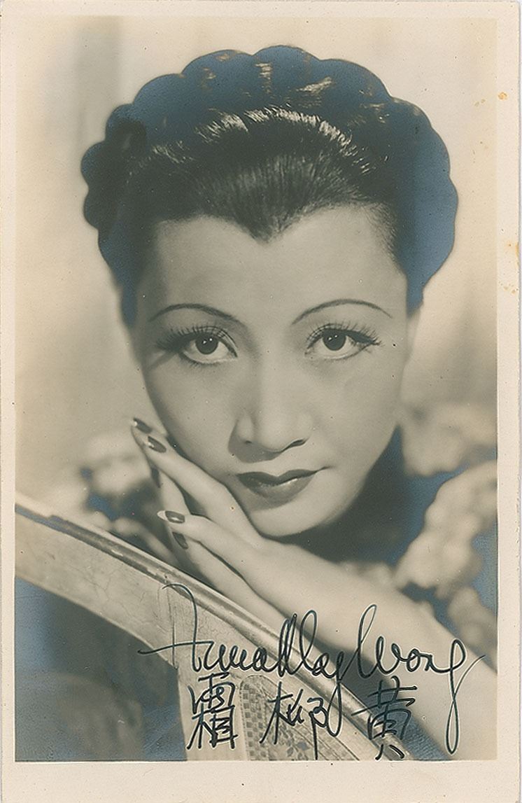 Desirable vintage matte-finish 3.5 x 5.5 postcard photo of Anna May Wong in a beautiful up-close pose, signed in fountain pen in both and English and Chinese. In fine condition, with light silvering to the darker areas of the image.