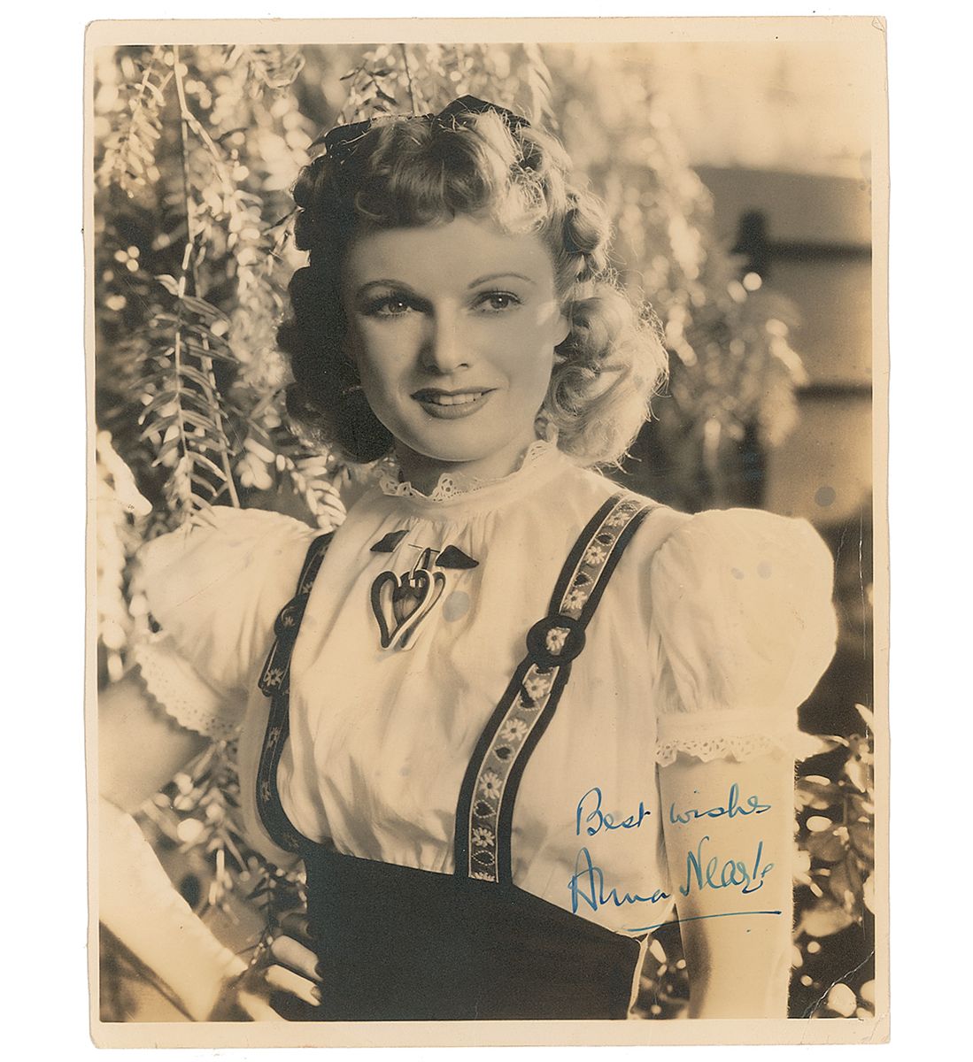 Vintage matte-finish 7.75 x 10 photo, signed in fountain pen. Trimmed vertical edges, crease to lower right corner, and scattered silvering to darker areas of background and image, otherwise fine condition.