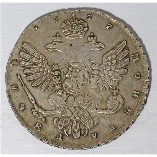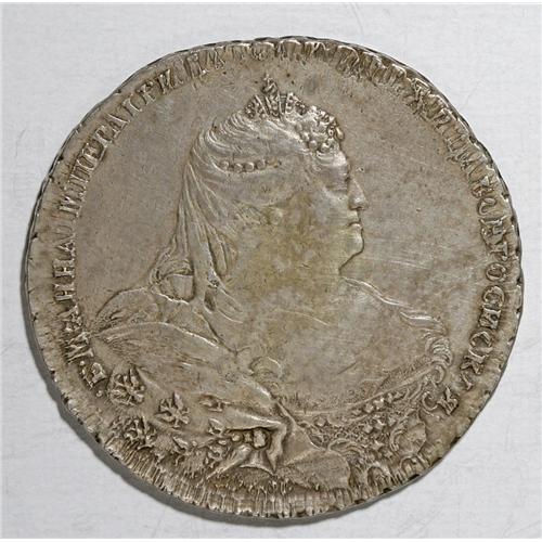 <B>Anna. Rouble 1737, Moscow,</B></I> Dmitriev's dies, 5 pearls in coiffure, obverse legend begins and ends with dots, Bit-199 var, Diakov-28, Uzd-0731, lightly cleaned VF.<BR><BR><b>Shipping:</b> Coin/Currency (<a target="_blank" href="http://www.heritageauctions.com/common/shipping.php">view shipping information</a>)