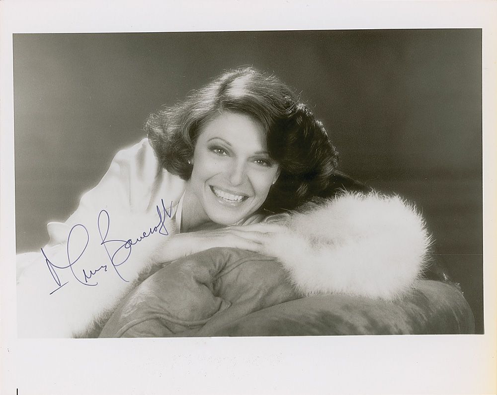 Glossy 10 x 8 photo of Bancroft relaxing on a sofa, signed in blue felt tip. In fine condition, with light toning to the right border.