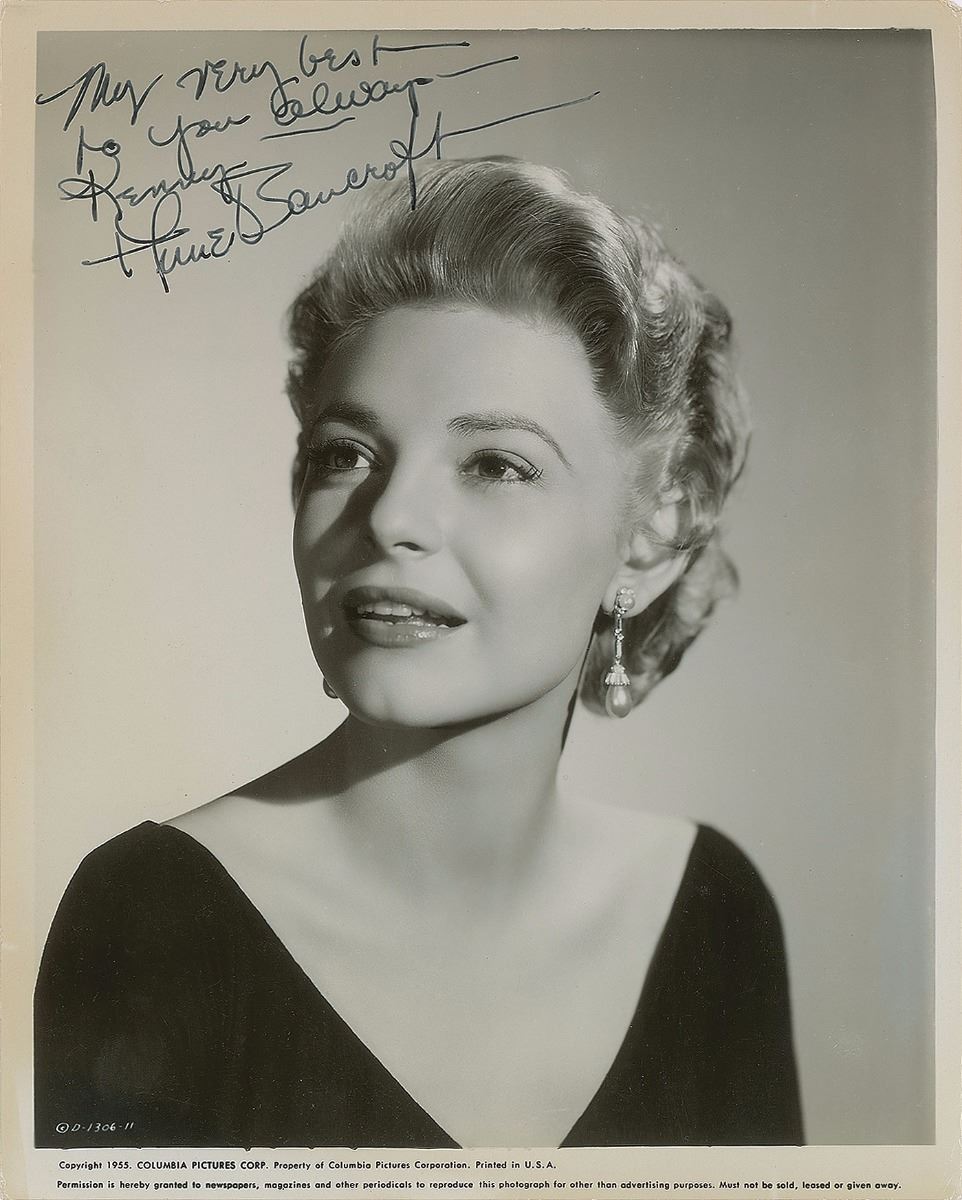Circa 1955 vintage glossy 8 x 10 Columbia Pictures publicity photo of the enchanting Bancroft, signed and inscribed in black ink, “My very best to you always Kenny, Anne Bancroft.” In fine condition, with a crease to upper left corner. An exceptionally early and attractive image of the versatile leading lady.