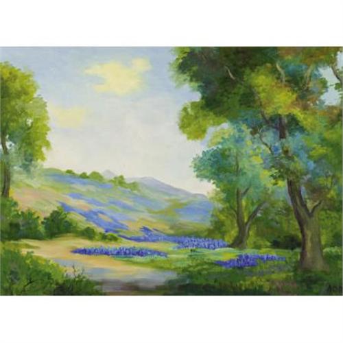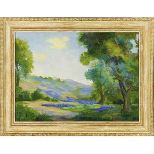 <B>ANNE CLAIRE RANDALL (American, Early 20th Century)</B></I><BR><I>Bluebonnet Hills</B></I><BR>Oil on linen<BR>19 x 26 inches (48.3 x 66.0 cm)<BR>Signed lower right: <I>ACR</B></I><BR> <BR>PROVENANCE:<BR>Buddy DeBarr, El Paso, Texas<BR><B>Condition Report:</B> Overall good condition.<BR><BR><b>Shipping:</b> Framed - without Glass, Medium (<a target="_blank" href="http://www.heritageauctions.com/common/shipping.php">view shipping information</a>)