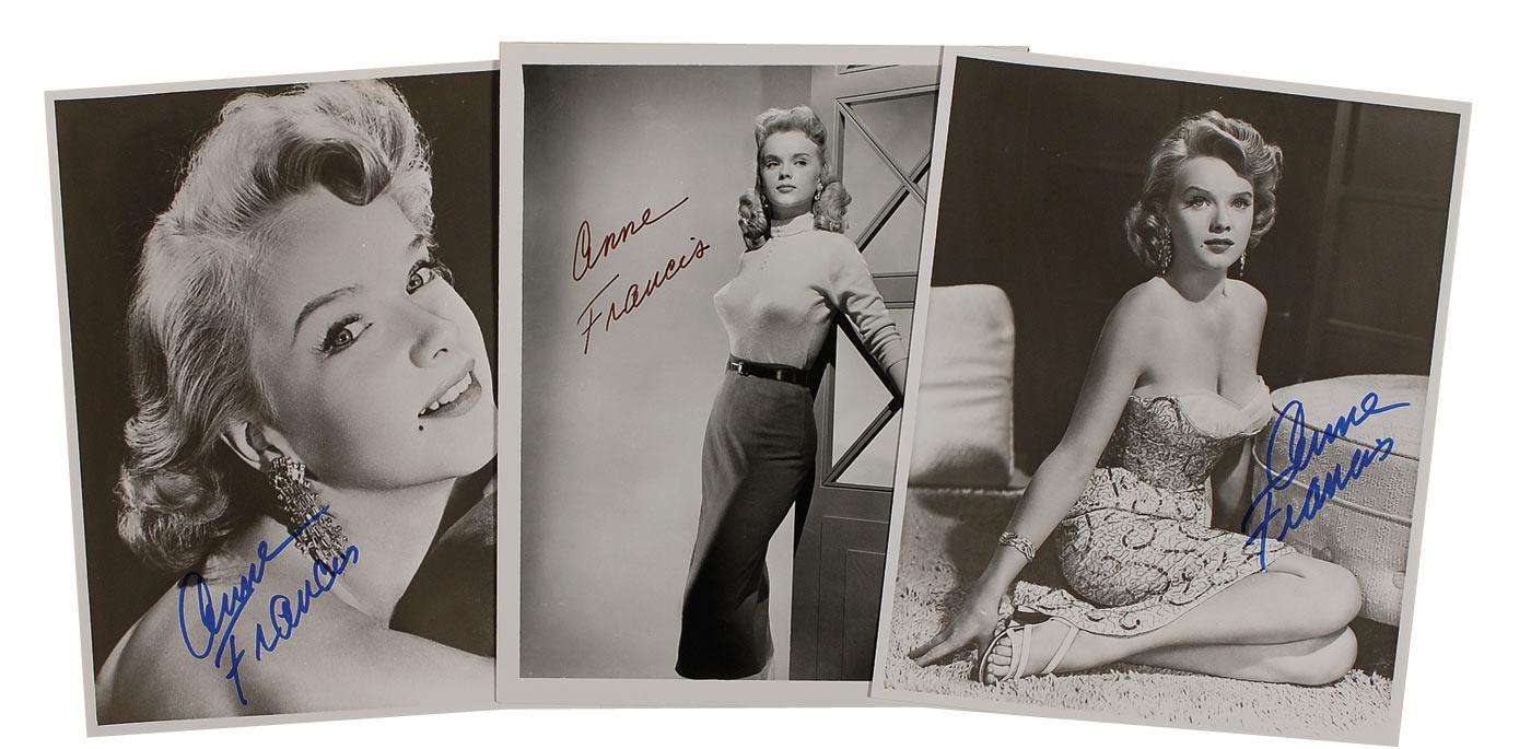 Three signed 8 x 10 photos, two satin-finish and one glossy, each signed in either blue or black felt tip by Francis. In fine condition.