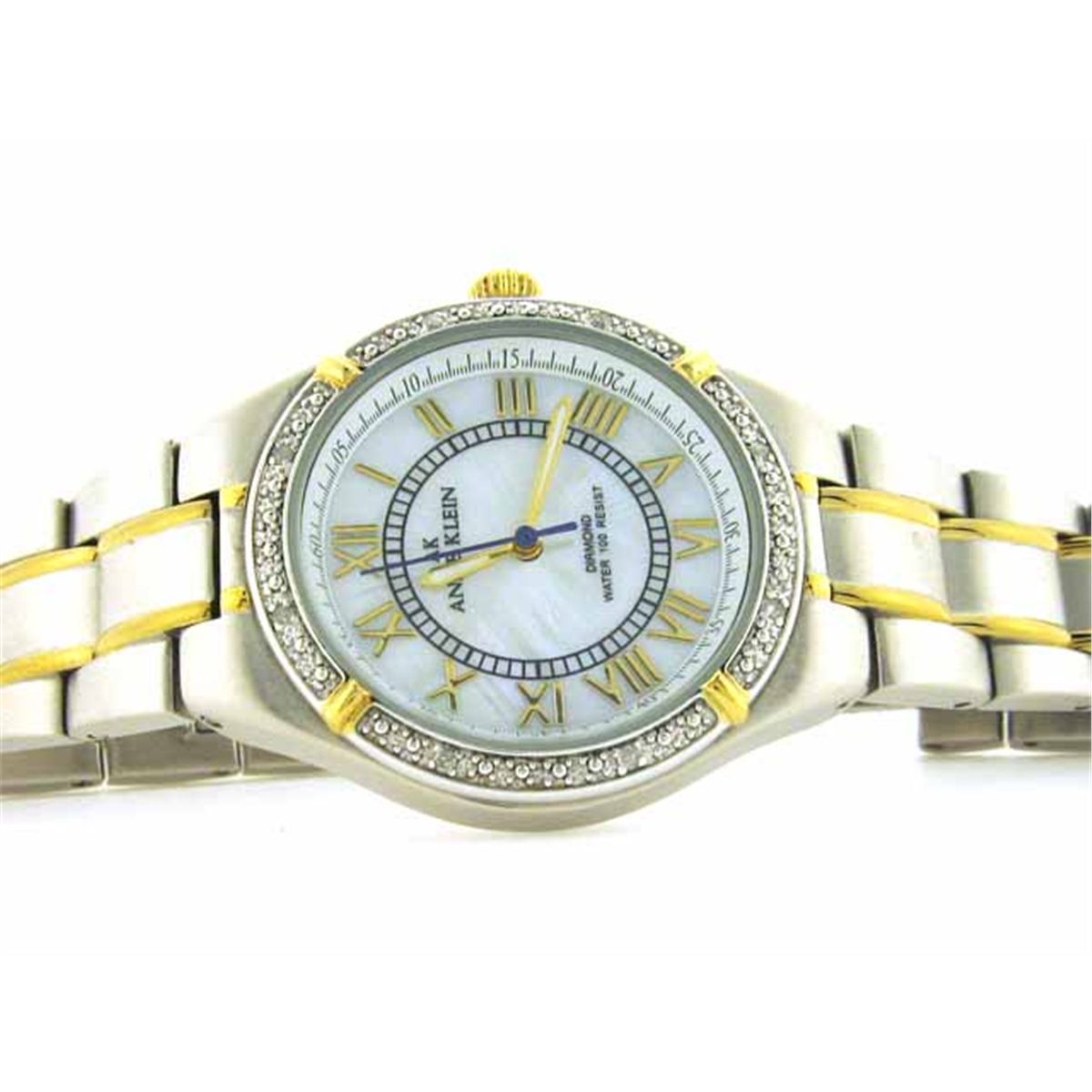Two tone Bezel and Bracelet; Sapphire on crown and seconds; Mother of Pearl dial; Diamonds; Push/pull crown; Gold tone marker; Luminous hands; Base metal bezel; Stainless steel back; Japan movement; Water resistant