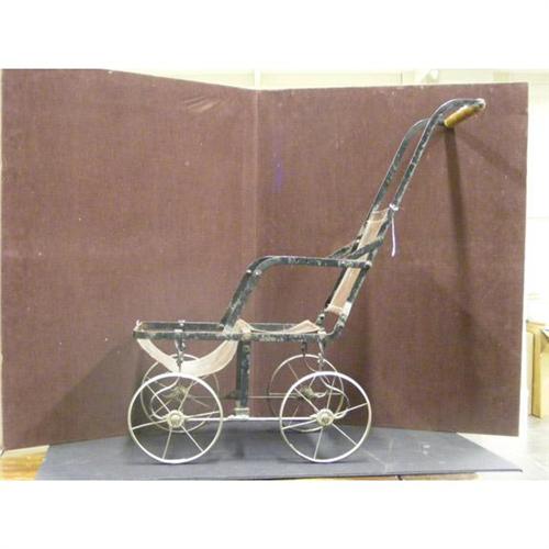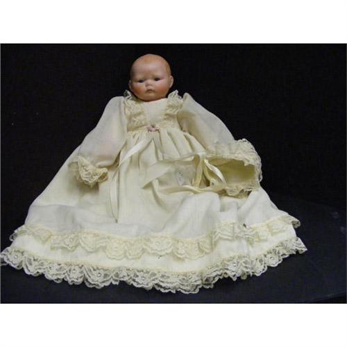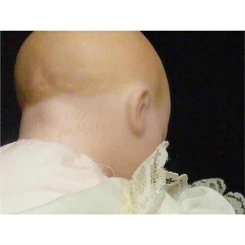 Anne Michels doll and vintage doll stroller. signed on back of neck and dated 1982.