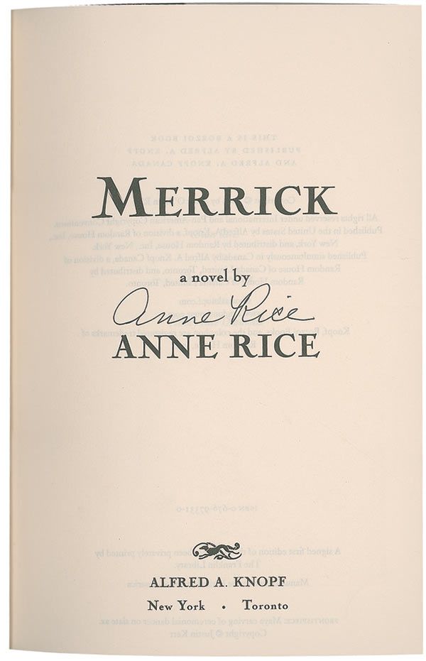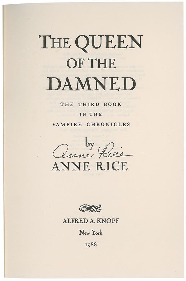 Two hardcover books, both with dustjackets: The Queen of the Damned (First Edition) and Merrick (later printing), each signed on the title page. In overall fine condition.
