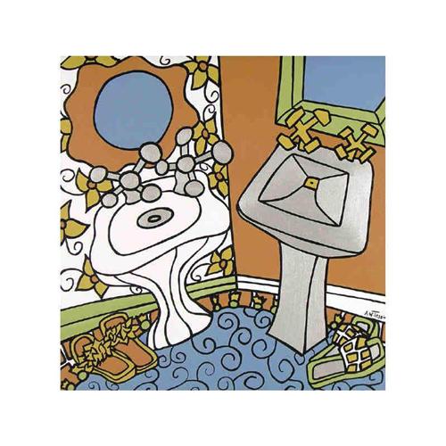 [Canadian b. 1975] HIS & HERS WHITE & SILVER SINKS Acrylic on canvas 24 x 24 in. Signed & titled.