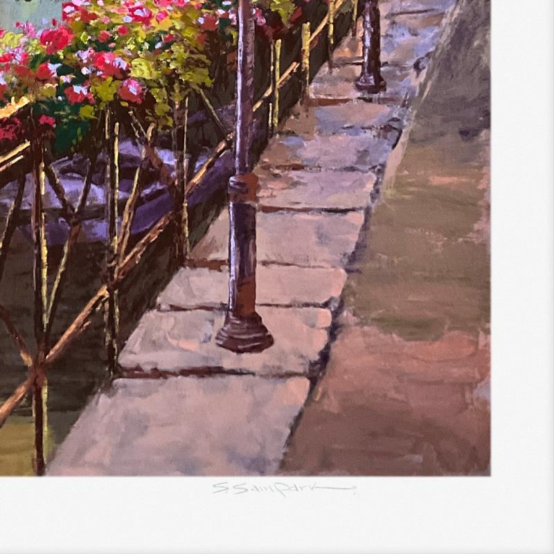 "Annecy Night" is a limited edition printer's proof serigraph on paper by Sam Park, numbered 1/4 and hand signed by the artist. Includes Letter of Authenticity. Measures approx. 33" x 56.5" (border), 28.5" x 52.5" (image).