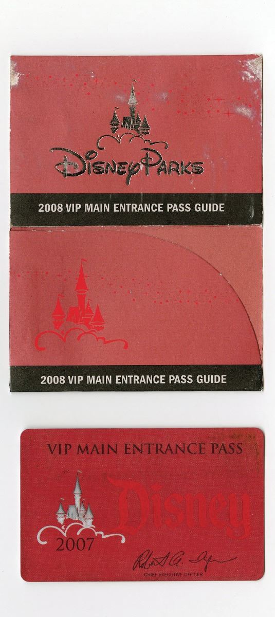 (Disneyland, 2007) Annette Funicello's 2007 main entrance pass to Disneyland. The 3.25"x2" card entitled her and her husband as well as (5) guests access to the park. In good used condition.