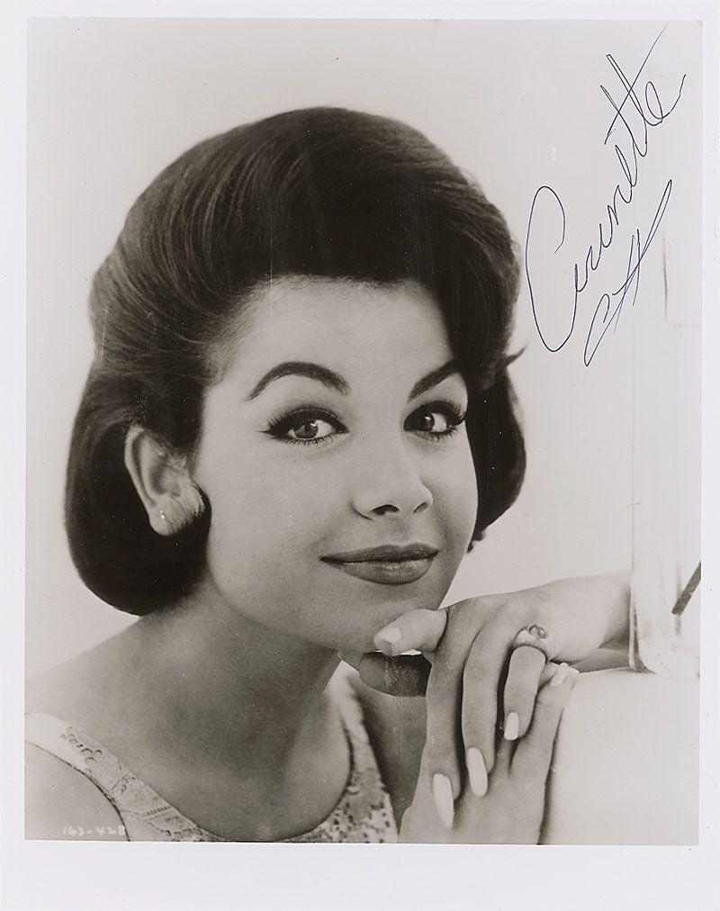 Glossy 8 x 10 head-and-shoulders photo, signed in black ballpoint, “Annette.” In very fine condition. Sadly, Funicello has been unable to sign for several years.