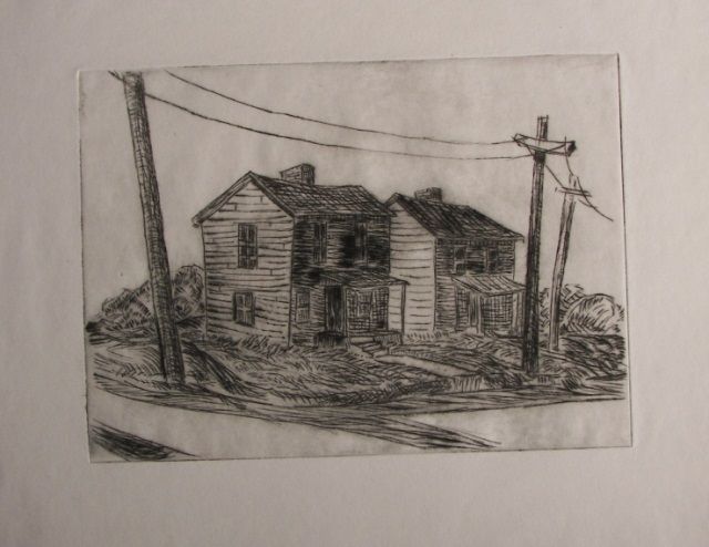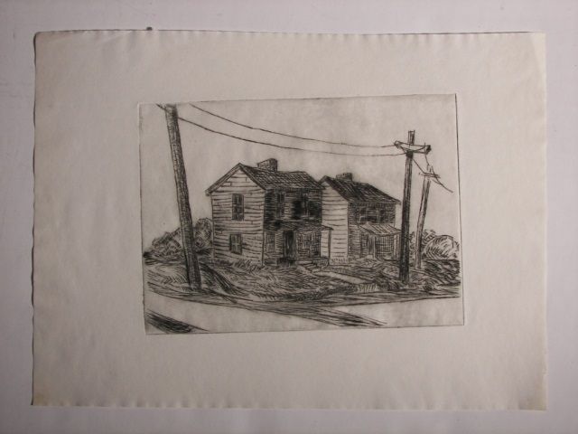 Annie Lee Ross Intaglio Etching , Annie Lee Ross , Intaglio Etching , Houses , 5" x 6 3/4" , (7796) Image Slightly Offset