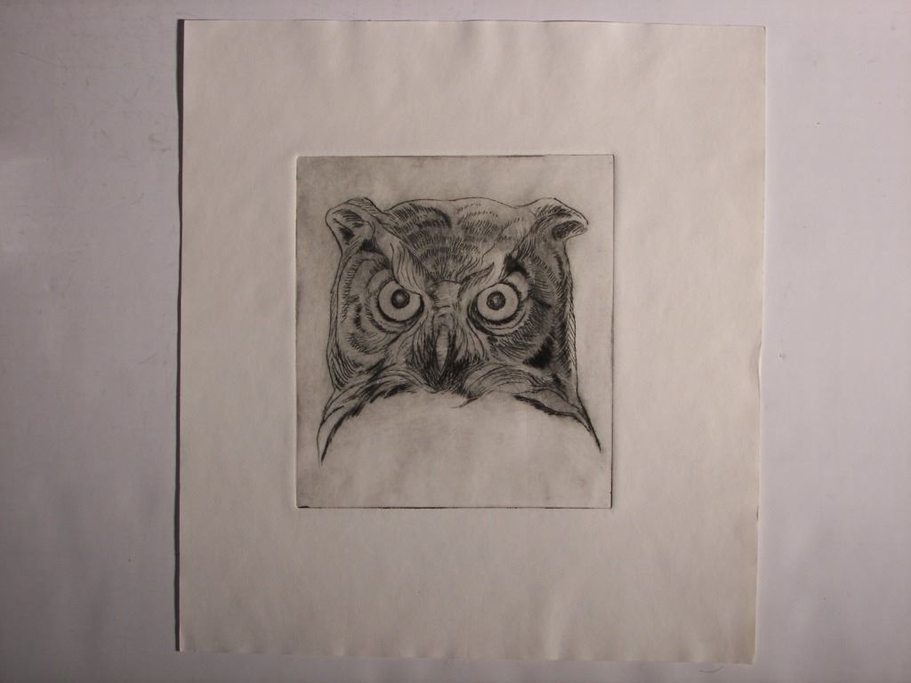 , Annie Lee Ross , Intaglio Etching , Owl Face , 5 1/2" x 5" , Unsigned , (7798)