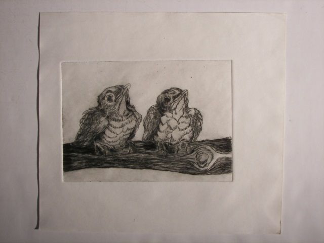 Annie Lee Ross Intaglio Print , Annie Lee Ross , Intaglio Print , 2 Baby Birds , 5" x 7" , (7801)