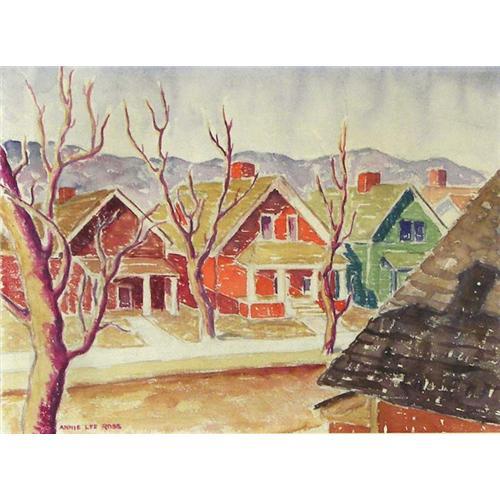Annie Lee Ross (1909-1978) Watercolor, "Across The Street", sight size 11 1/2" x 15 3/8", signed lower left