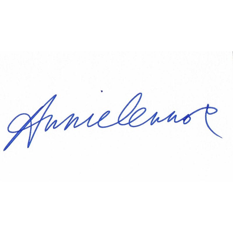 This autographed card by Lennox measures 3" x 5". Written in blue ink, the signature and card are in fine condition.