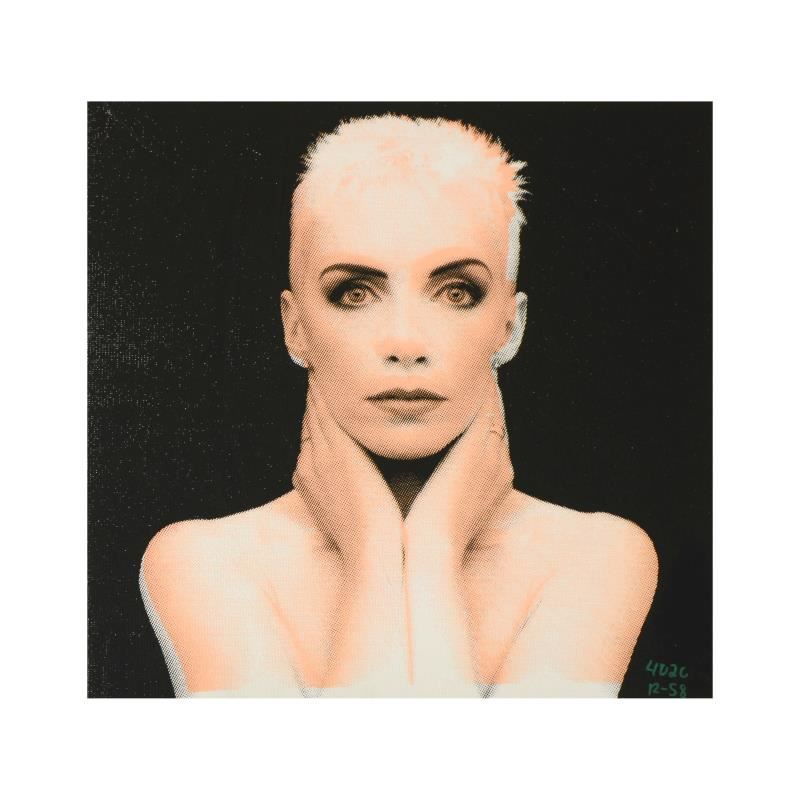 "Annie Lennox" is a one-of-a-kind hand-pulled silkscreen on canvas by Ringo Daniel Funes - protege of Andy Warhol's apprentice, Steve Kaufman. This piece is hand signed by the artist and Includes Certificate of Authenticity. This piece comes from the Andy