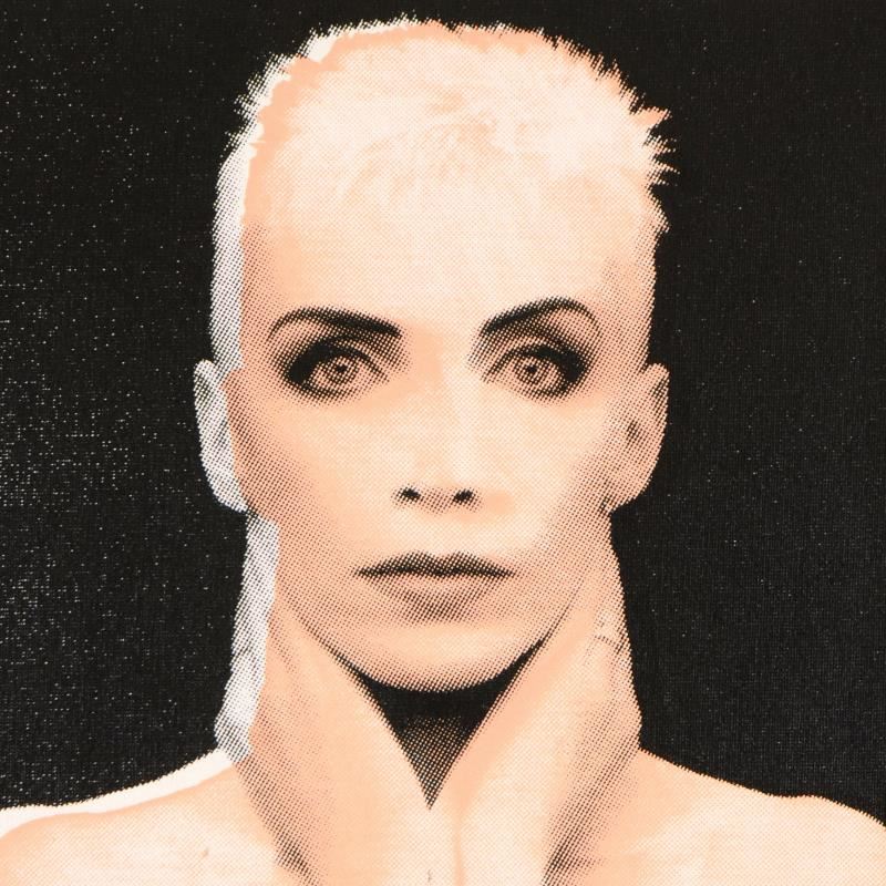 "Annie Lennox" is a one-of-a-kind hand-pulled silkscreen on canvas by Ringo - protege of Andy Warhol's apprentice, Steve Kaufman. This piece is hand signed by the artist and Includes Certificate of Authenticity. This piece comes from the Andy Warhol Legacy Series. Due to the nature of the canvas these, pieces will need to be mounted for framing. Measures approx. 16" x 16" (image).