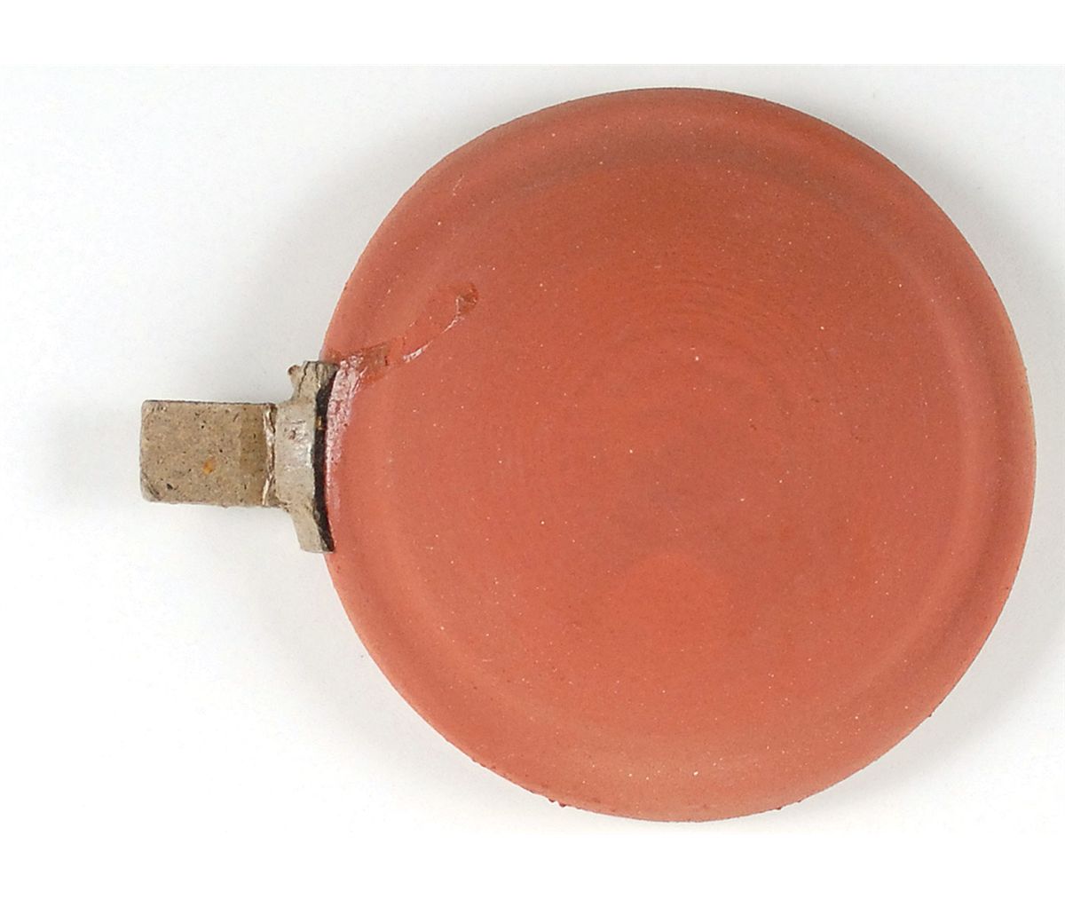 A Ligowsky patent clay pigeon owned by Annie Oakley. Reddish-brown target measures 4.5? in diameter, and retains its original 1? pasteboard throwing tab. Accompanied by a copy of a certificate of authenticity from Bess Moses Edwards, great-grandniece of Annie Oakley, stating the pigeon “was passed down through our family.” In fine condition. Developed over a period of time, most notably by George Ligowsky, the versatile clay pigeon became the standard target for shotguns. Not many of these survived, either breaking due to poor storage, or at the business end of Oakley’s shotgun.