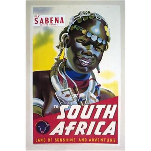 39.5x25 inches Very little handling,High Quality Paper. Advertising poster for travel to south africa. This piece is linen backed, and rare