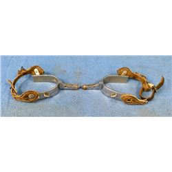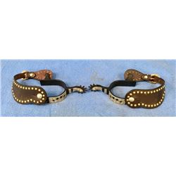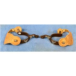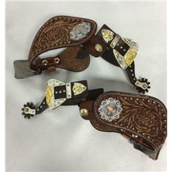 Pair Spurs W/ Silver Mounts Of Cow Skulls