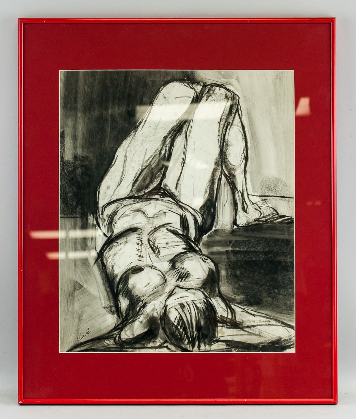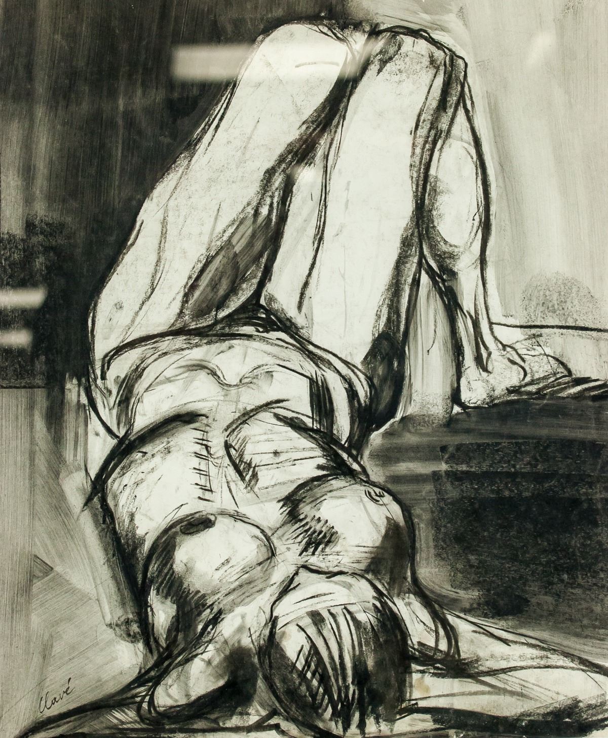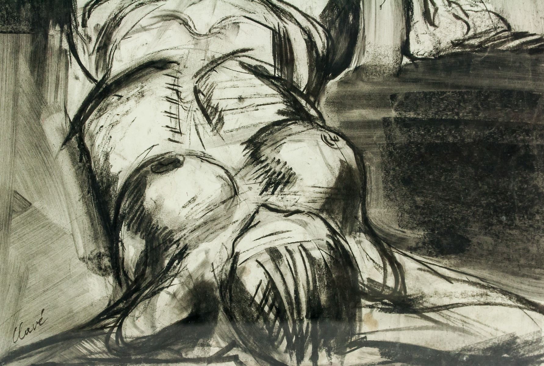 Mixed media on paper, framed. Featuring a nude. Signed Clave on the lower left corner. Label inscribed THE FRAMING EXPERIENCE and in pen with notation, UJ HAM JAN/12/91. Attributed to Antoni Clave Sanmartin (1913-2005, Spanish). 50.5 x 42 cm (19.9 x 16.5 inches). Frame size: 70 x 57.5 (27.6 x 22.6 inches). PROVENANCE: Southern Ontario estate