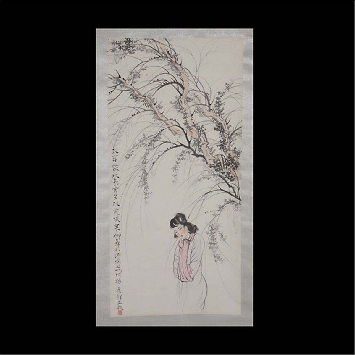 Anonymous: A Beauty, hanging scroll, ink and color on paper, the lower left inscribed, signed 'Jingduo,' one seal reading 'Rong Jingduo Yin' {44 x 21 inches (111.8 x 53.3 cm)}