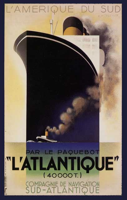 Artist: Anonymous - Title: L'Atlantique - Medium: Fine Art Reproduction Giclee on Canvas - Image Size: Approximately 32 inches x 20.25 inches - Unframed on Unstretched Canvas -
