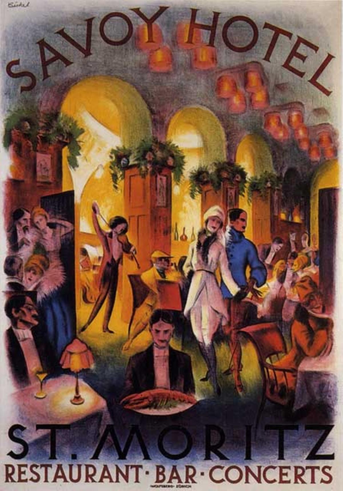 Artist: Anonymous - Title: Savoy Hotel St Moritz - Medium: Fine Art Reproduction Giclee on Canvas - Image Size: Approximately 20 inches x 14 inches - Unframed on Unstretched Canvas