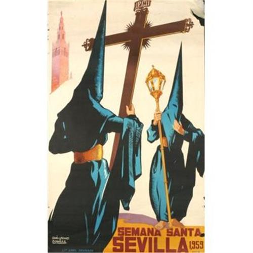 Mint condition poster rendering of the Semana Santa in Seville Spain. Rich colors, never framed.