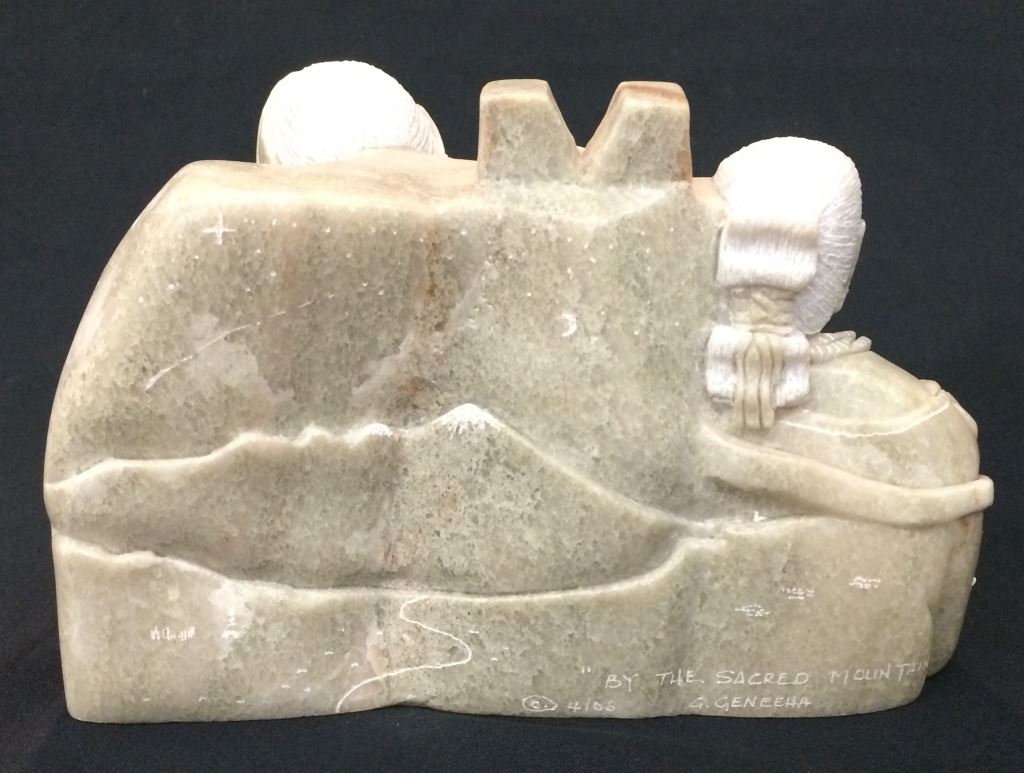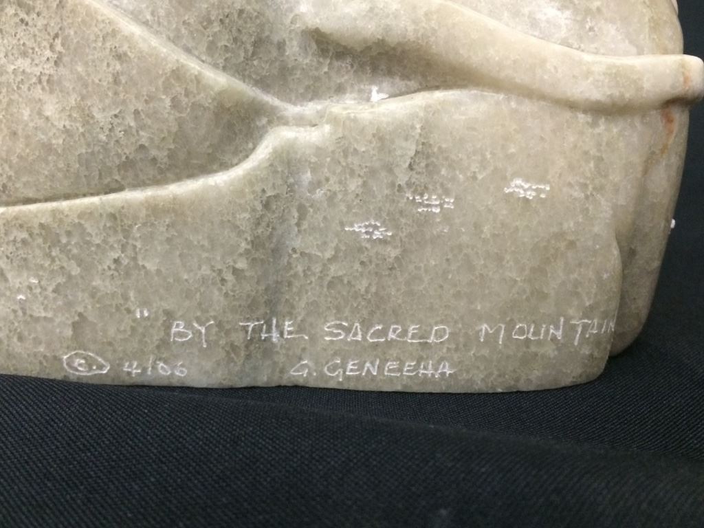 Titled, “By the Sacred Mountain.” This great original alabaster carving is signed G. Geneeha and measures approx. 5.5” tall. In excellent condition! Is dated ’06.