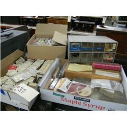 2 flats of phono needles; bin and box full of phono parts and needles
