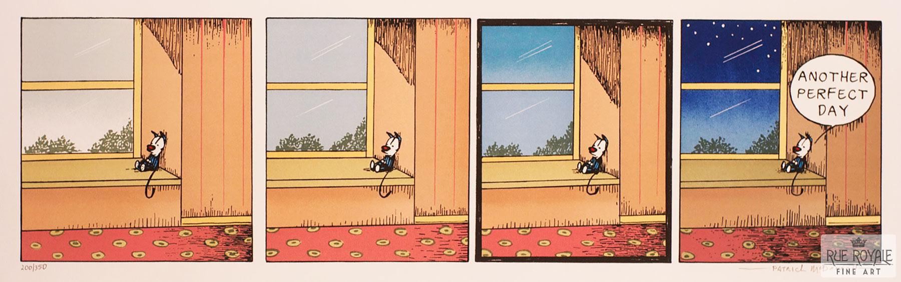 Hand pulled lithograph on Rives BFK paper. The edition is numbered 1/350 to 350/350 and is hand signed by the artist. Includes certificate of authenticity.Categories: Contemporary Lithos, Patrick McDonnell | MUTTS, View All Contemporary Lithos Tags: animal, cat, comic strip, comics, Mutts.