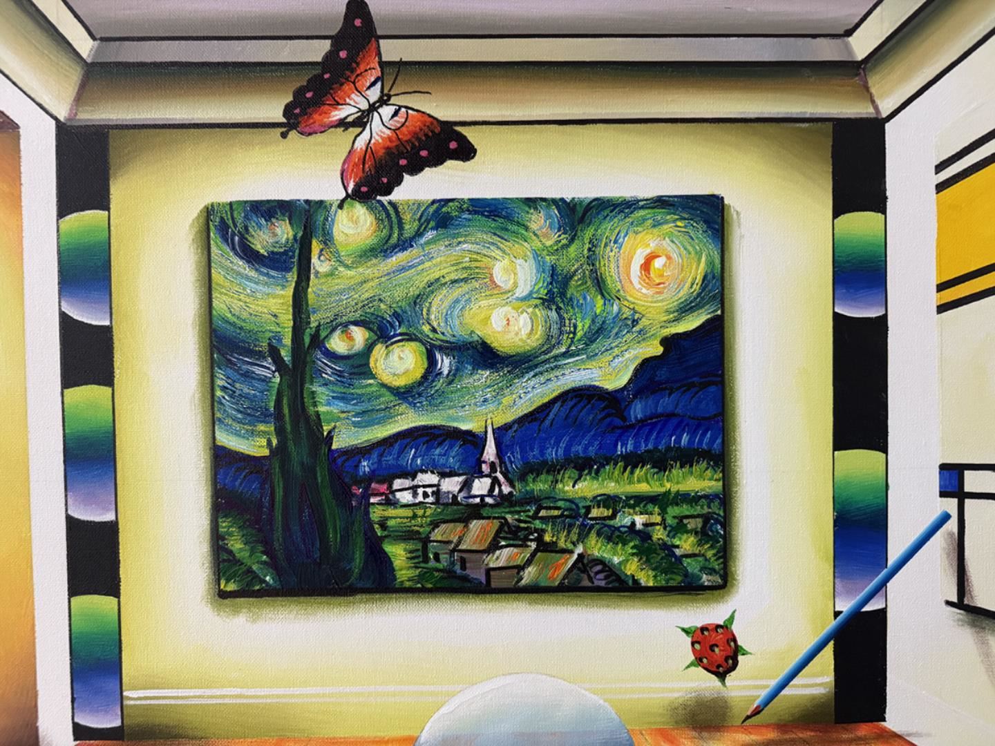 This Gorgeous original acrylic artwork, a striking blend of colors and forms, is meticulously created on canvas and hand-signed by the artist, adding a personal touch that enhances its uniqueness. This artwork comes framed and ready to hang. Art size 36x24" framed size 38x26"