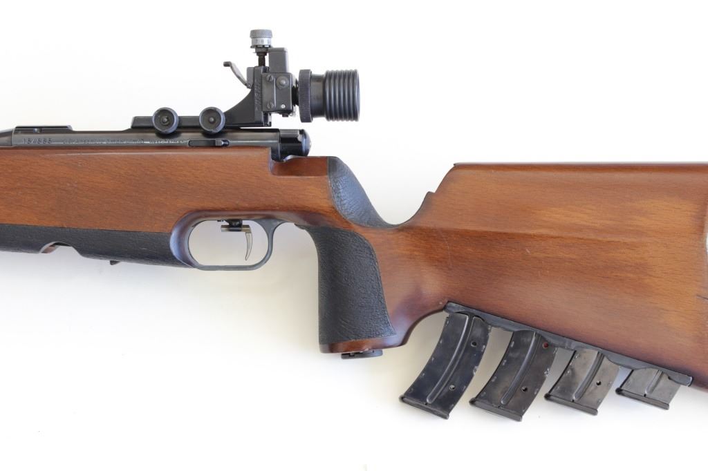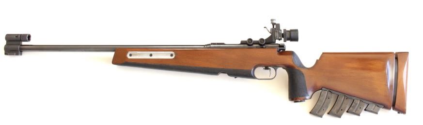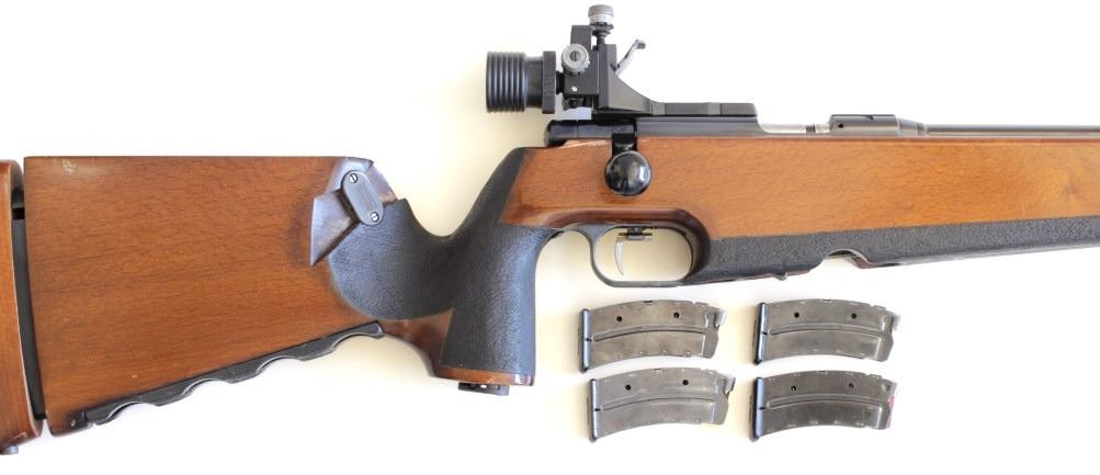 Anschutz Biathlon 1427 .22 LR SN 154656 right hand competition target rifle with 23 1/2" round barrel. Rifle remains very good, complete with sights and 4 Anshutz magazines stored in stock. From an old St. Louis collection. NO FFL. Est. 500-1000right hand competition target rifle with 23 1/2" round barrel. Rifle remains very good, complete with sights and 4 Anshutz magazines stored in stock. From an old St. Louis collection. NO FFL. Est. 500-1000