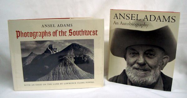 Ansel Adams Photographs of the Southwest with an essay on the land by Lawrence Clark Powell, 12'' L x 9.5''H. Photographs made from 1928- 1968 in Arizona, California, Colorado, New Mexico, Texas and Utah with a statement by the photographer and an essay on the land by Powell. First Printing. New York Graphic Society, Bonton, hardcover. Very good in very good Dust jacket protected in Mylar cover. Small smudged fingerprint on two pages. Not price clipped - Ansel Adams, an Autobiography with Mary Street Alinder, 11''H x 9''W. First Edition, Hardback. ISBN: 0-8212-1596-5. Completed just before his death, the text and many photographs capture the lasting legacy of one of the America's most famous and beloved photographers. Very good to near fine in very good dust jacket, with a small amount of rubbing and discoloration to the wihite dust jacket. Not price clipped.