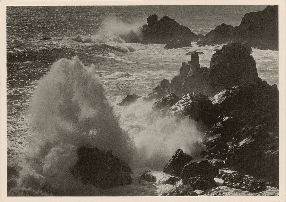 TLS, on a 6 x 4.25 postcard photo of Adams’s ‘Surf and Rocks,’ October 31, 1980. Letter of photographic advice. In full: “That’s quite a weighty question which you have placed before me. But given your two choices I would opt for a combination—one must have enough technique to communicate without distraction—but if there is no feeling or concern behind the making of the photograph one is making an empty statement. I wish you well with your photography.” In fine condition.