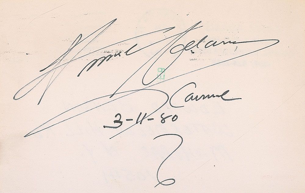 Felt tip signature, “Ansel Adams, Carmel, 3-11-80,” on an off-white 5.5 x 3.5 card. In fine condition.