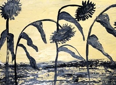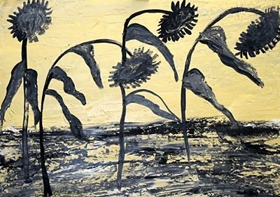Oil on paper in the manner of Anselm Kiefer - Sunflower I, bearing the signature. Unframed dimensions approx 19 x 14.