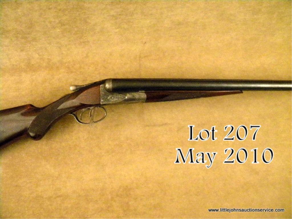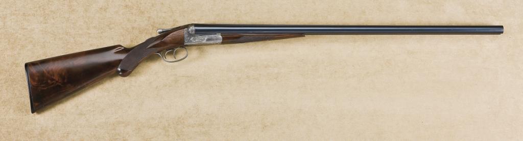 Ansley H. Fox 12 gauge Double Barrel Shotgun with 30” bbls, double triggers, standard extractors, marked “A” on water table and serial #28074. The gun remains in very good plus to near fine condition with 85-95% original blue on barrel,30-50% case colors drifting to silver grey on frame, 60% thinning blue on trigger guard and expertly refreshed stock with light refinish. The stock is the original length with correct buttplate. The frame shows standard engraving, the action is tight and bores near excellent. The stock is near excellent as restored with one “Hunting Bump” climbing over the fence mark behind Pistol Grip. The wood shows a nice burl grain. Est. $1,250-2,500