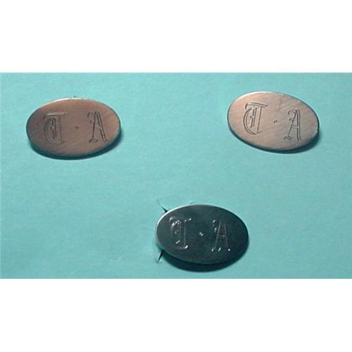 Simple, yet classy, this set of matched cuff links and tie clip by Anson is a sure hit. Delicately etched initials (T.A.) adorne each piece.
