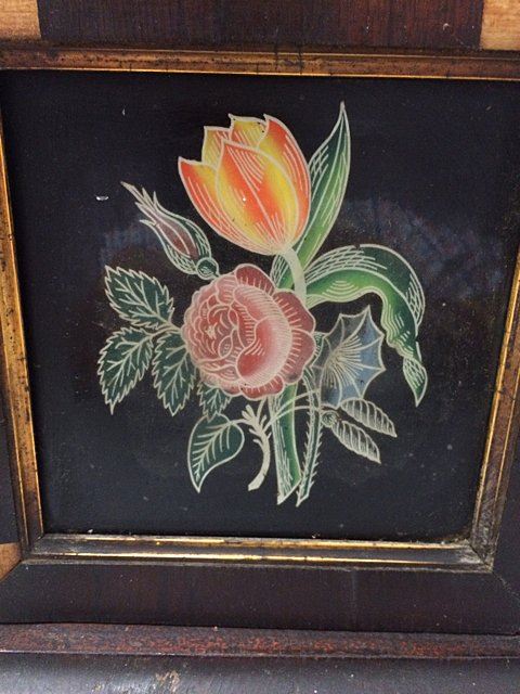 Ansonia Clock Co., 8 Day Gothic Clock Case. Case only with nice label and flowers on bottom on glass.