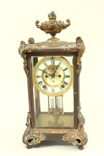 With key. Marked Ansonia, New York. Approx. 15 1/4" H x 7 1/2" W x 6 1/4" D. Working condition.