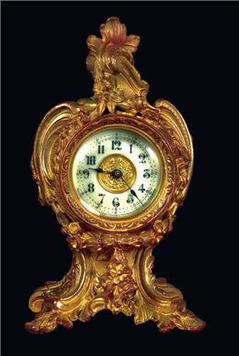 Ansonia Clock, small gold leaf ca. 1892. 7 inches tall.