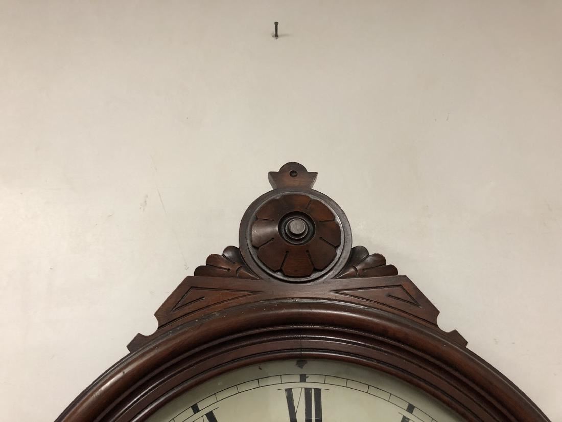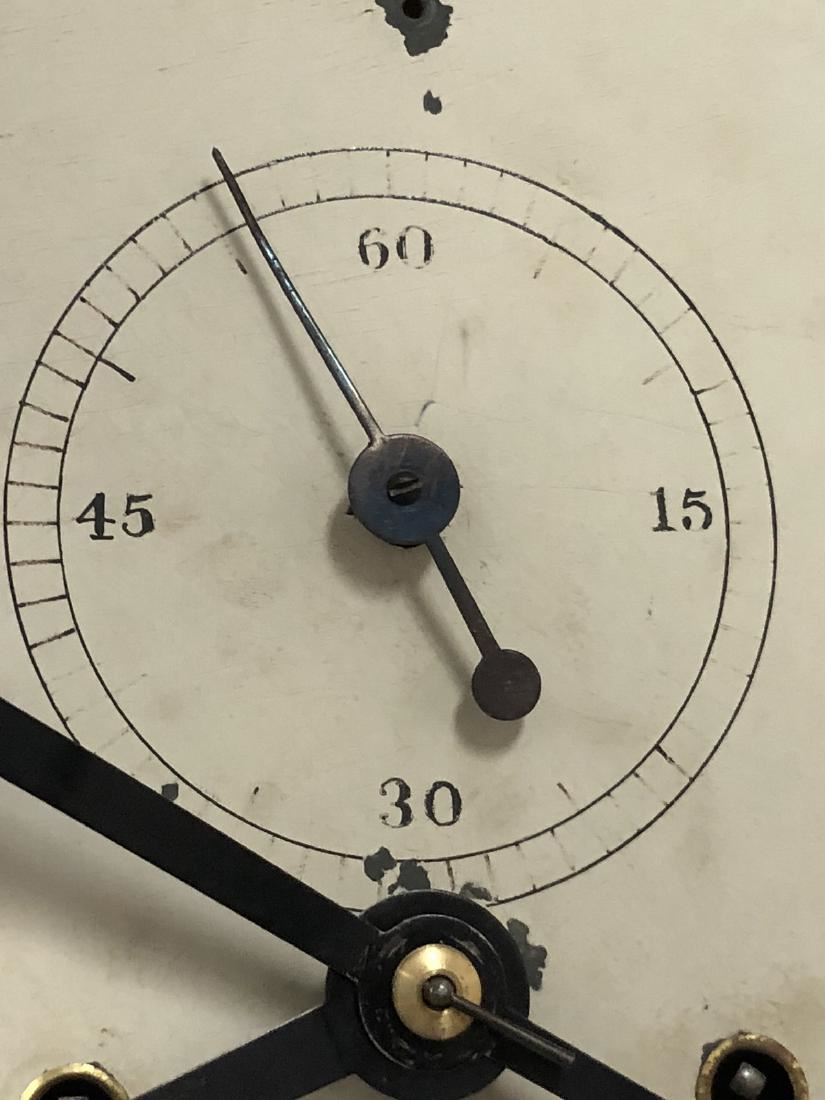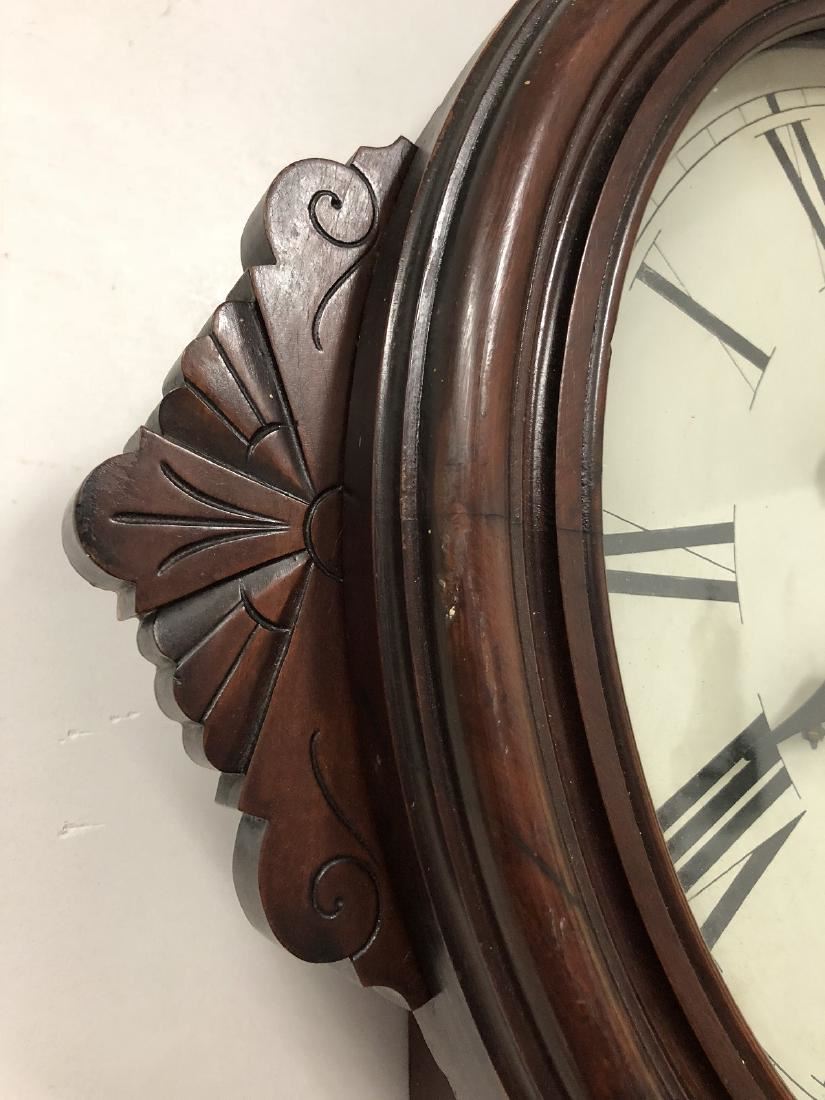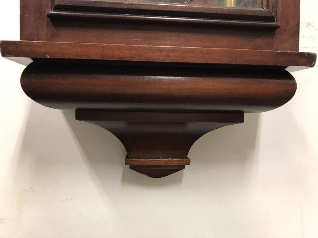 Ansonia "General" Regulator Wall Clock. Cherry or walnut case, all original, still in running condition, weight driven, possibly hung in an early railroad station. Has the sweep second hand, has the original pendulum, weights, measures approx. 6 ft.(72") tall x 20" wide.