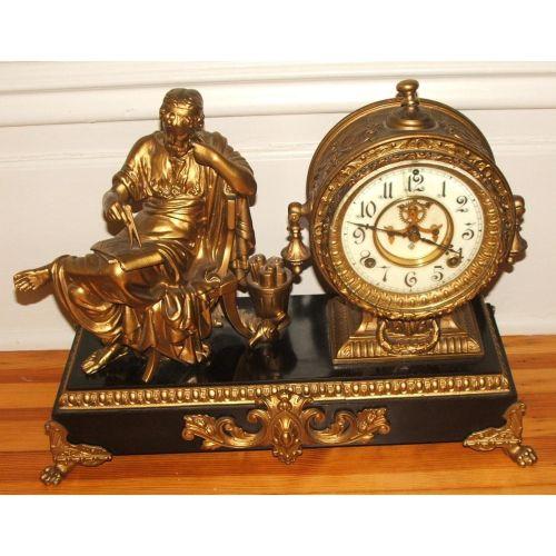 Ansonia Clock Company. Late 19th -early 20th century. Gilt Metal- missing urn finial on top of the clock. 13" high by 17" wide Missing finial on top of clock
