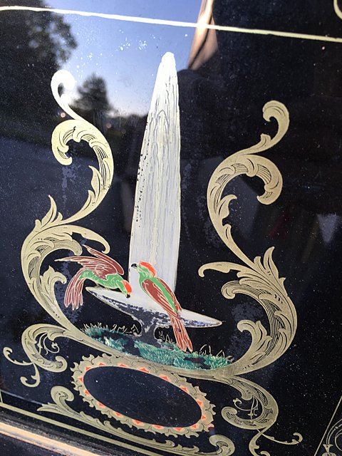 Ansonia Rosewood 8 Day Shelf Clock. Beautiful label, "Patent Brass Clocks, Ansonia Brass and Copper Company, Ansonia, Conn.", original rosewood case, reverse painted birds on fountain on glass, key wind, pendulum, measures approx. 33" tall x 17 1/2" wide x 5" deep. Stampled on back, "C.R.I. Ieizman & Cro. Redding, PA".