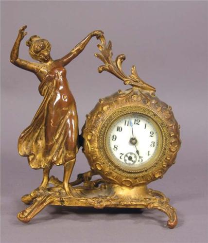 Ansonia Style Clock. Cracked leg. 6 1/2 X 7 inches.